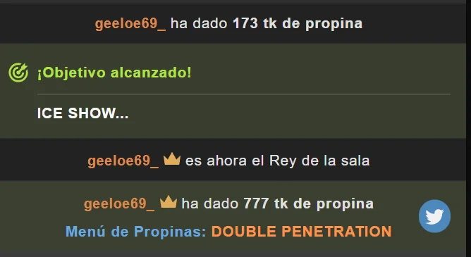 kiss---1 many kisses---3 spank ass x1 ---5 suck finger ---9 MORE PLEASURE x10sec(domi ultrahigh) ---10 if you like me ---11 moan your name ---12 spank ass x5(whip/palette) ---15 slap face x3 ---17 keep doing this ---20 show tits ---22 lick tits ---25 oil in tits ---30 nipple clamps ---33 handcuffs ---41 footcuffs ---42 saliva in tits ---45 gag ---46 oil where you want ---50 heels or stokings ---51 fingers in pussy ---55 finger in ass ---60 3 fingers in ass ---65 plug ---66 BLOWJOB ---69 CONTROL DOMI 180sec ---77 CONTROL DOMI 300sec ---111 CONTROL DOMI (all pvt) ---200 DILDO IN PUSSY ---222 SQUIRT ---250 ANAL ---333 DOUBLE PENETRATION ---555 ANAL BIG DILDO ---777
