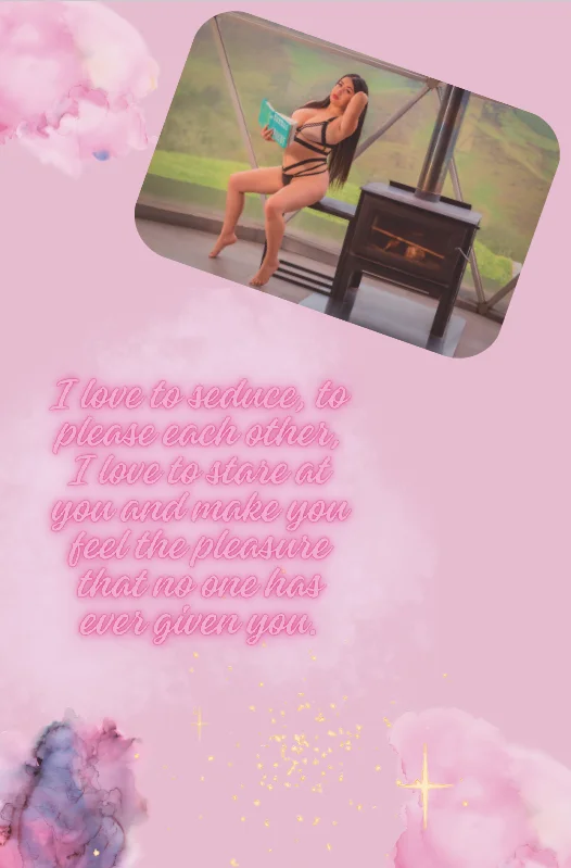 I love to seduce, to please each other, I love to stare at you and make you feel the pleasure that no one has ever given you, just by looking into my eyes you can discover my naughty, seductive, and daring side, I love to be expressive and make you feel so much pleasure. As I feel, I love delicacy and sensuality. I don't like rude and haughty people, be polite and you will receive the same treatment.